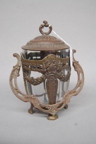 Lot Description:Antique French bronze lidded biscuit barrel or lolly jar with bronze swing handle