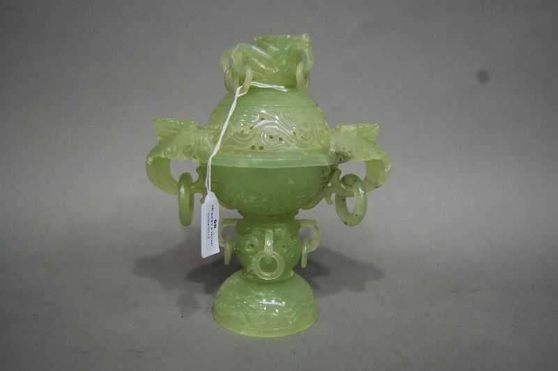 Lot Description:Chinese pale celadon carved jade censer