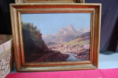 figure on a mountainous path, signed lower left, 47 x 64 cm -
