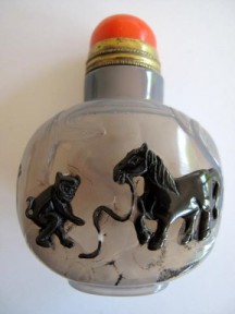 Lot Description:Chinese snuff bottle carved monkey and horse