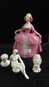 Lot Description:Small collection of half doll items incl. 2 ceramic heads