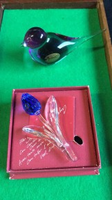and a Rikaro hand made crystal bird, amethyst coloured -