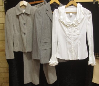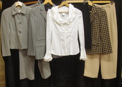 together with 2 Basler jackets, Anne Klein pleated trousers, a black Trent Nathan straight skirt and a white ruffle collar blouse, size 8-10 approx -