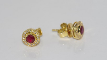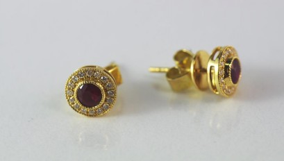 Lot Description:18ct gold, round ruby and diamond earrings