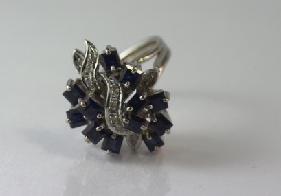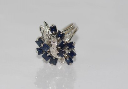 Lot Description:14ct white gold, sapphire & diamond cluster ring