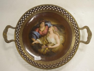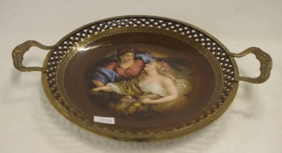 Lot Description:Bavarian porcelain dish with ormolu handles