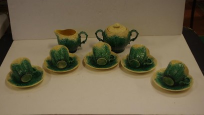 cabbage pattern, to include 5 cups and saucers, lidded sugar pot and creamer (as inspected) -