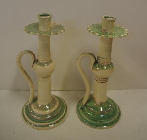 Lot Description:Pair of Wileman & Co faience ware candlesticks