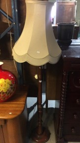 Lot #171 - Vintage timber standard lamp with 4 metal paw feet and a nicely shaped trumpet shade