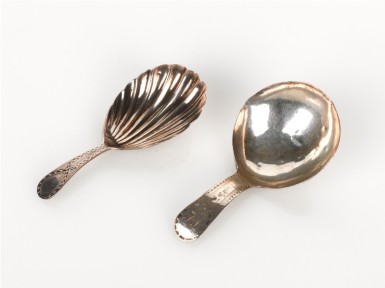 of Old English pattern, the first with shell bowl and the second with plain circular bowl, both probably by George Wintle, London 1787 and 1794 (2) -