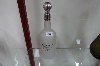 Lot #201 - Antique French silver hallmarked overlay acid finish glass rye bottle