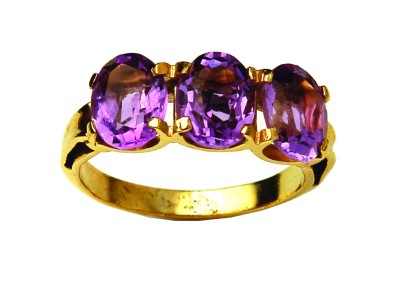 the three oval facet cut amethysts claw set, restrained decoration to shoulders. -
