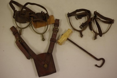 one set stamped 'Stallwood Camberley', together with a bone handled boot hook & leather belt accessory -