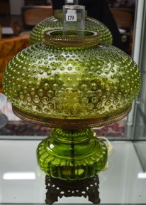 Lot Description:A 1970's Green Glass Banquet Lamp