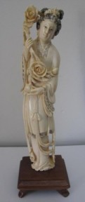 Lot Description:Chinese Republic carved ivory figure of a lady holding flowers