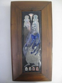 Lot Description:Framed enamel plaque woman with unicorn probably French