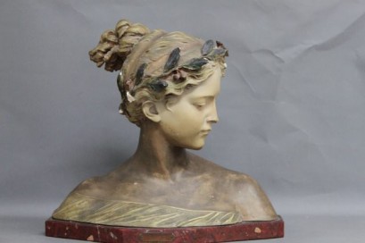Impressed Schumacher 1909, modelled as a young maiden a wreath in her hair on a socle base l 36cm -
