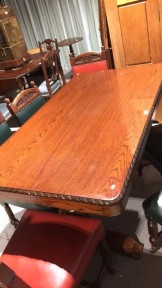 rectangular form twin pedestal with stretcher base, nice grain, 151cm L -