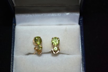 Lot #531 - Pair of 10ct yellow gold earrings set with peridot