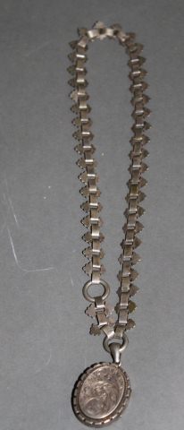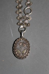 Lot Description:Edwardian Sterling Silver and Rose Gold Locket and Collar Chain