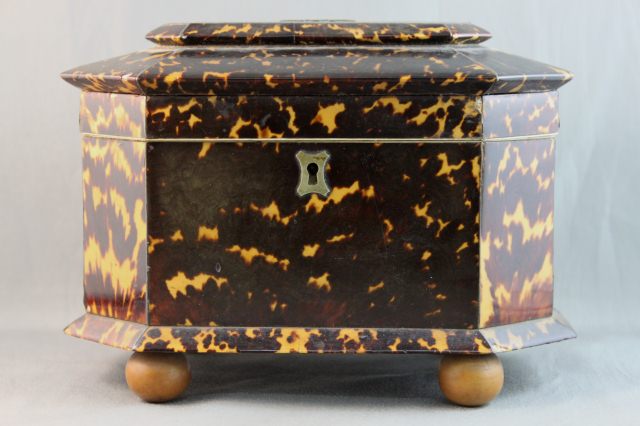 Lot Description:Regency Tortoise Shell Tea Caddy and Cover