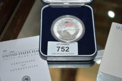 proof condition, showing the US flag, with privy mark, comes with certificate, box etc -