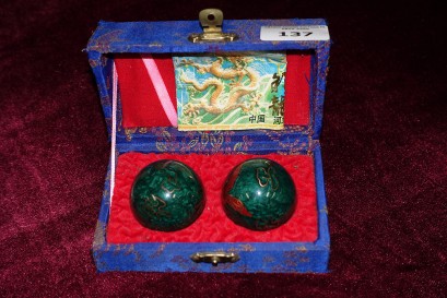 Lot #137 - Boxed Chinese green Cloisonné musical balls