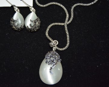 Lot Description:Moonstone & marcasite pendant on chain with matching earrings
