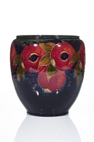 'Pomegranate' pattern, decorated with pomegranates and berries amongst foliage against a navy blue ground, signed in green 'W. Moorcroft', impressed 'Moorcroft, Burslem England'
