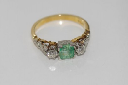 Lot Description:18ct yellow gold&platinum, emerald & diamond ring