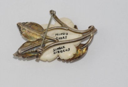 Lot Description:Silver and Ming's ivory Hibiscus flower brooch