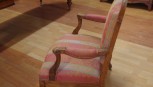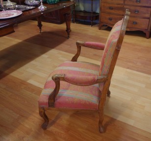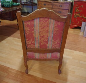 with carved walnut frame, recovered in period material, early 19th Century, purchased in the Loire region of France, 100 cm high, 69 cm wide -