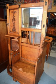 hinged lid with storage under, mirror back, carved panels, etc, umbrella retaining, ring in need of reattaching, missing drip tray, slightly modified, ??? top cut down etc, 179cm T x 97cm W -