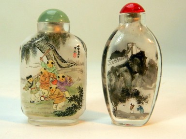 Lot Description:Two Chinese Inside Painted Glass Snuff Bottles, Painted with 100 Boys at Play