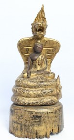 Lot #278 - A Gilt Lacquer Buddha, Seated on the Coiled Serpent King, Cambodia, 19th Century