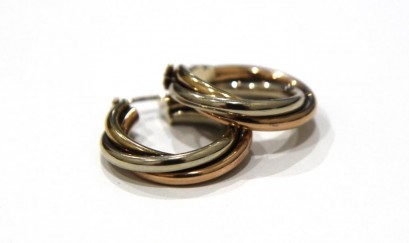 Lot #410 - A Pair of 9ct Yellow, Rose & White Gold Twist Hoop Earrings