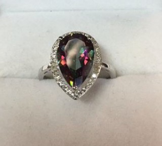 Lot Description:Sterling silver Mystic gemstone and white sapphire dress ring