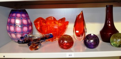 Lot #853 - 8 pieces Studio glass to incl. 3 paper weights