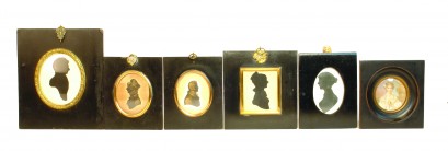 early 19thC, oval images of a man and woman in ebonised frames. 140 x 110. -