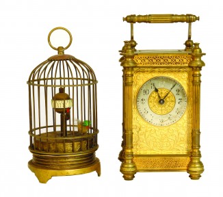 Lot Description:A novelty clock modelled as a caged articulated bird