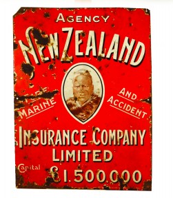 Lot Description:An old Maori chief decorated ‘New Zealand Insurance Company Ltd’ enamel sign