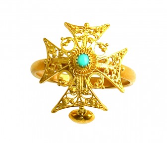 Lot Description:A vintage high carat bright gold fancy Maltese cross ring