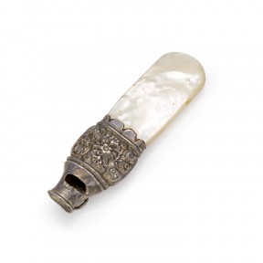 Lot Description:An antique mother of pearl and silver baby's whistle