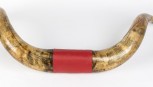 Lot #462 - A pair of mounted long horns with scrimshaw decoration