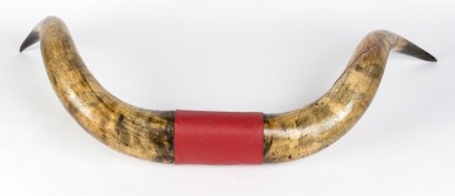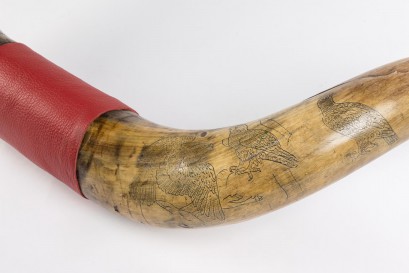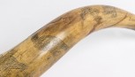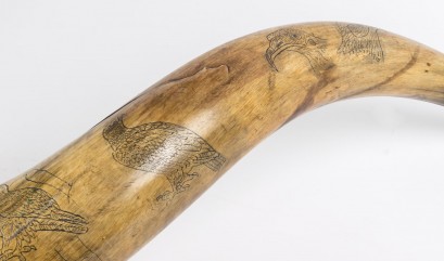 Lot Description:A pair of mounted long horns with scrimshaw decoration