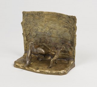 Lot Description:An Australiana bookend, brass and silver gilt, 19th century, 12.5 cm high.
