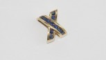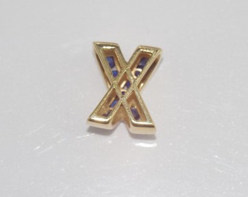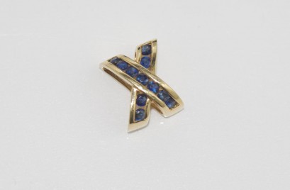 Lot Description:14ct yellow gold & blue gem X pendant