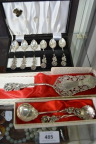 all rose decorated incl. set of 6 teaspoons, cake serving trowel and 2 various sugar / cream spoons -