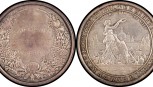 Lot Description:MEDALLION: Silver (76mm) Woman on harbourside holding wreath and shield