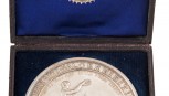 Lot #147 - MEDALLION: Silver (76mm) Woman on harbourside holding wreath and shield